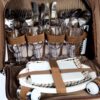 Set includes: 4 plates, 4 glasses, 4 spoons, 4 forks, 4 knives, 1 knife for bread, 1 salt shaker and pepper shaker (2in1), 1 opener, corkscrew, knife (3in1 folding) 1cutting board, 4napkins, 1tablecloth.