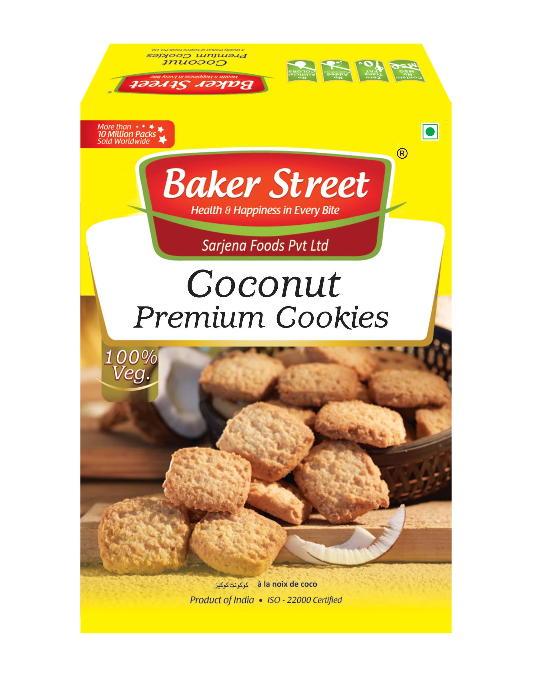 Wheat Flour, Sugar, Edible Vegetable Fat, Palm oil, Palm, Kernal oil, Coconut oil, Til oil, Antioxidant E-319, Desiccated Coconut 9.0%, Milk Solids, Emulsifier E-481 (i), E-471, Raising agent E-503 (ii), E-500 (ii) & Salt.