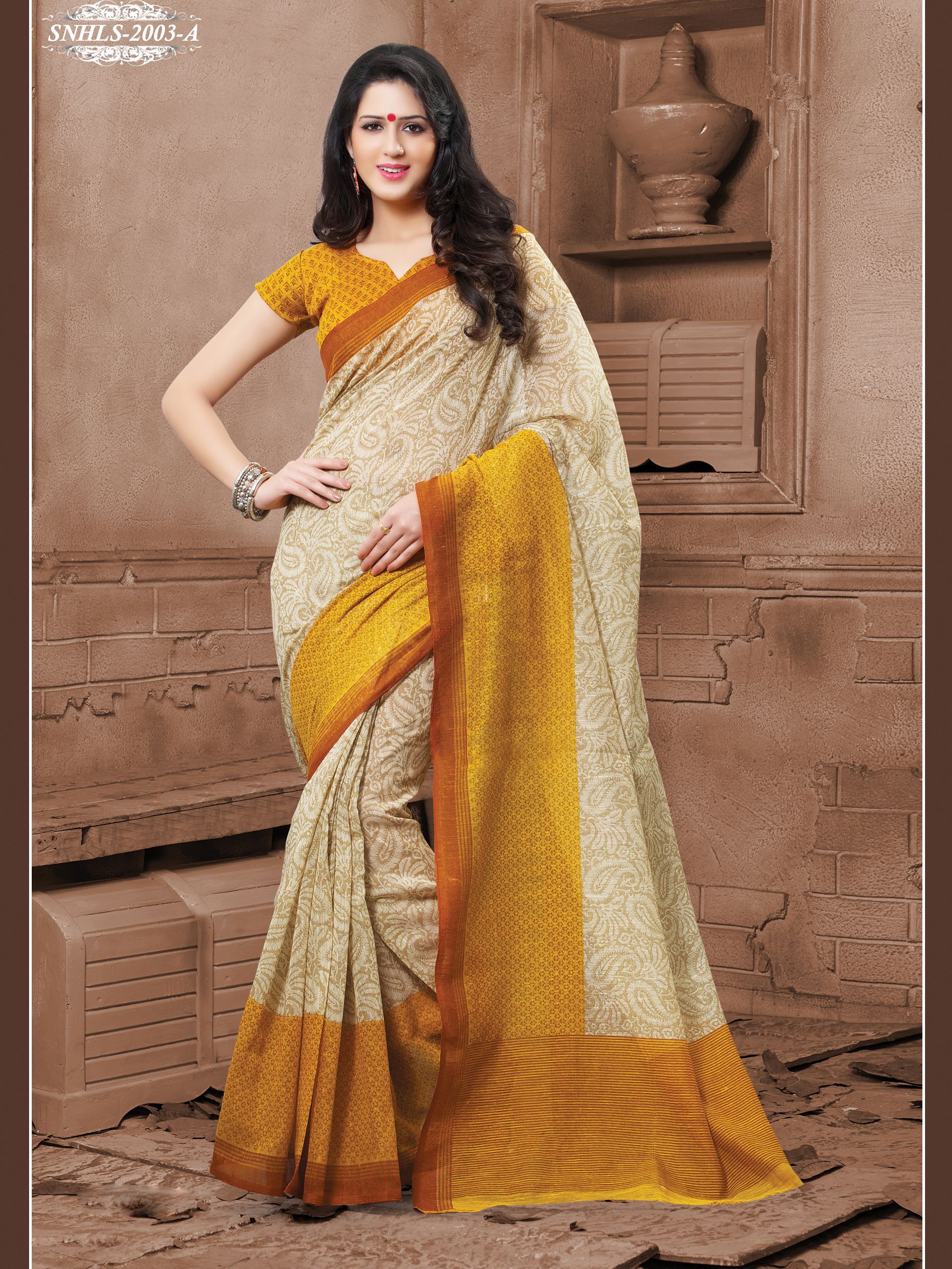Shonaya Beige & Golden Colour Cotton Silk Printed Saree With Unstitched Blouse Piece