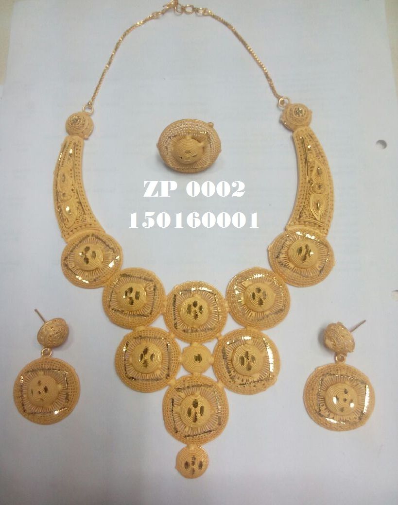 The base material is copper and the Gold is deposited on it through various processes.We have a wide range of designs in Bangles,Necklaces and other related Jewelry.