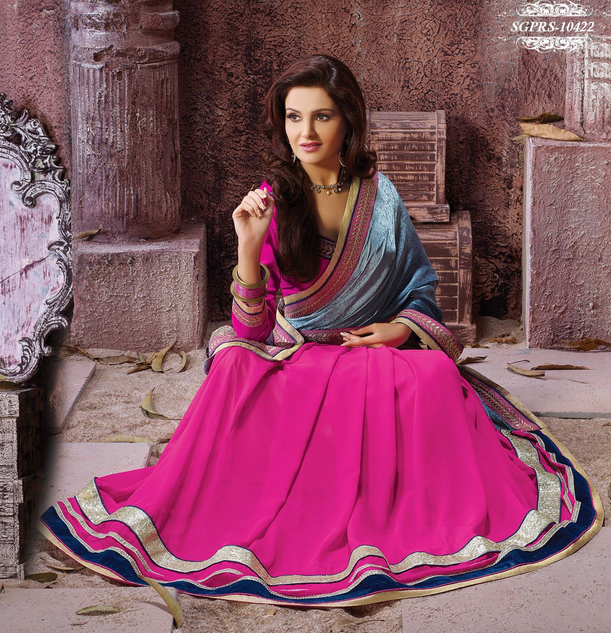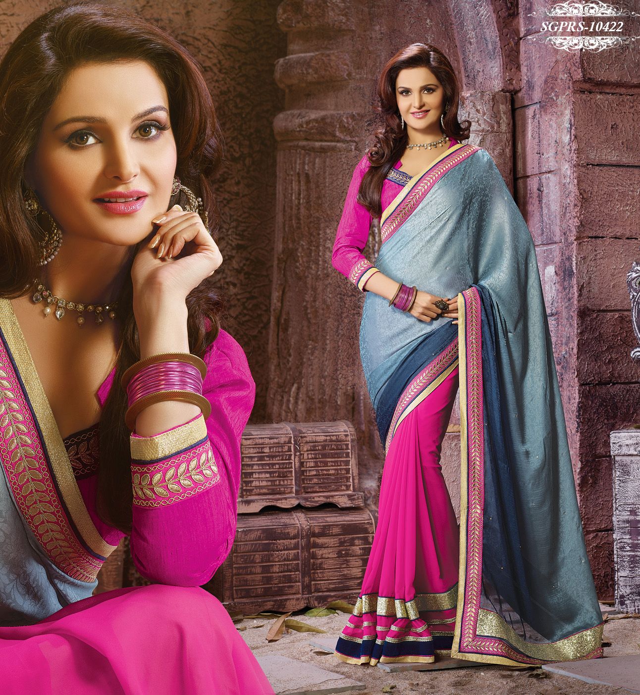 Shonaya Pink & LightBlue Colour Georgette Embroidered Saree With Blouse Piece