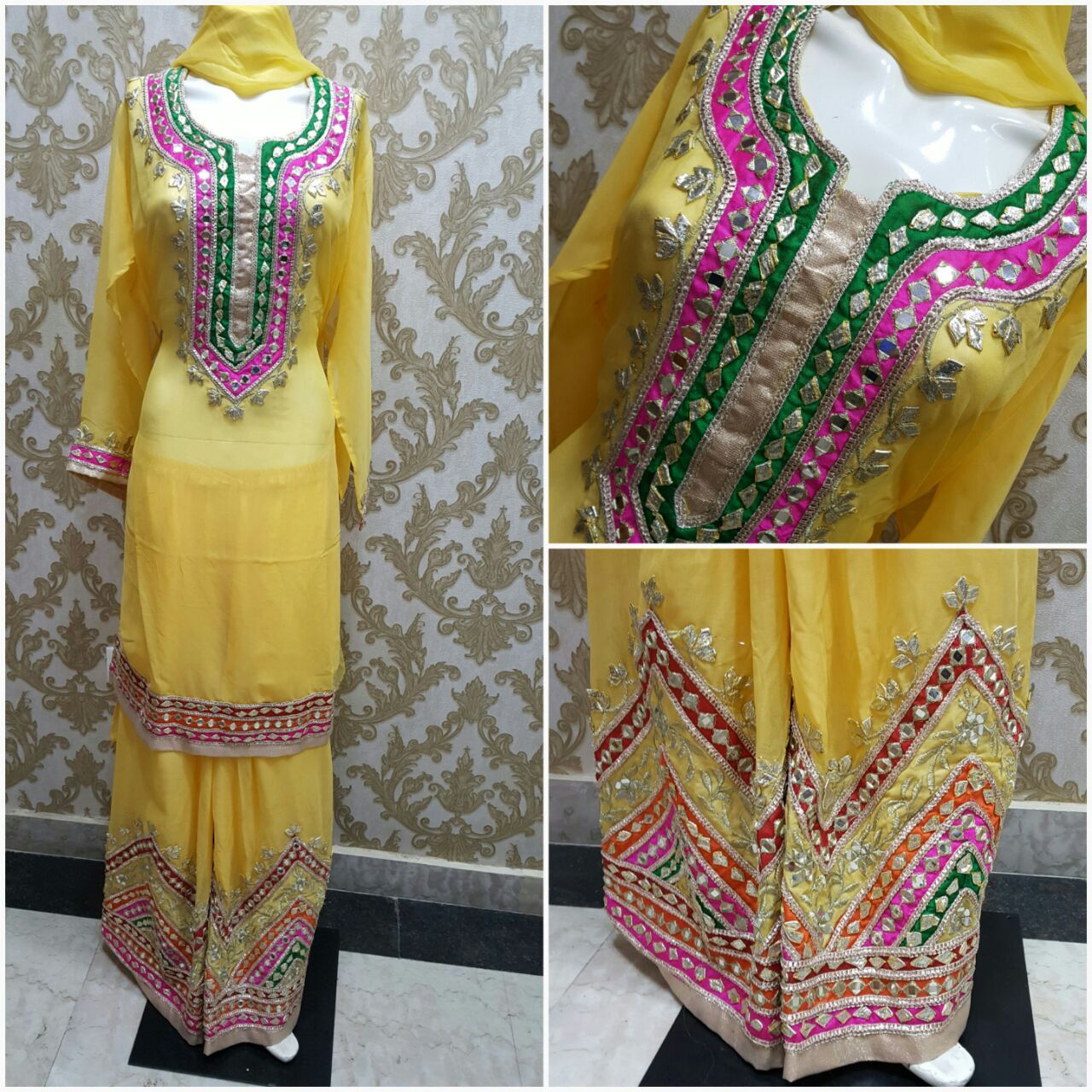 Indian & Pakistani Dress materials available. Variety would vary from embroidered dresses to indo-fusion styled dresses. Authentic ethnic wear from lucknow, to designer clothes from top-class Designers like Maria B. fabric quality would be the best . Range includes sarees .,lehanga, gowns & suits