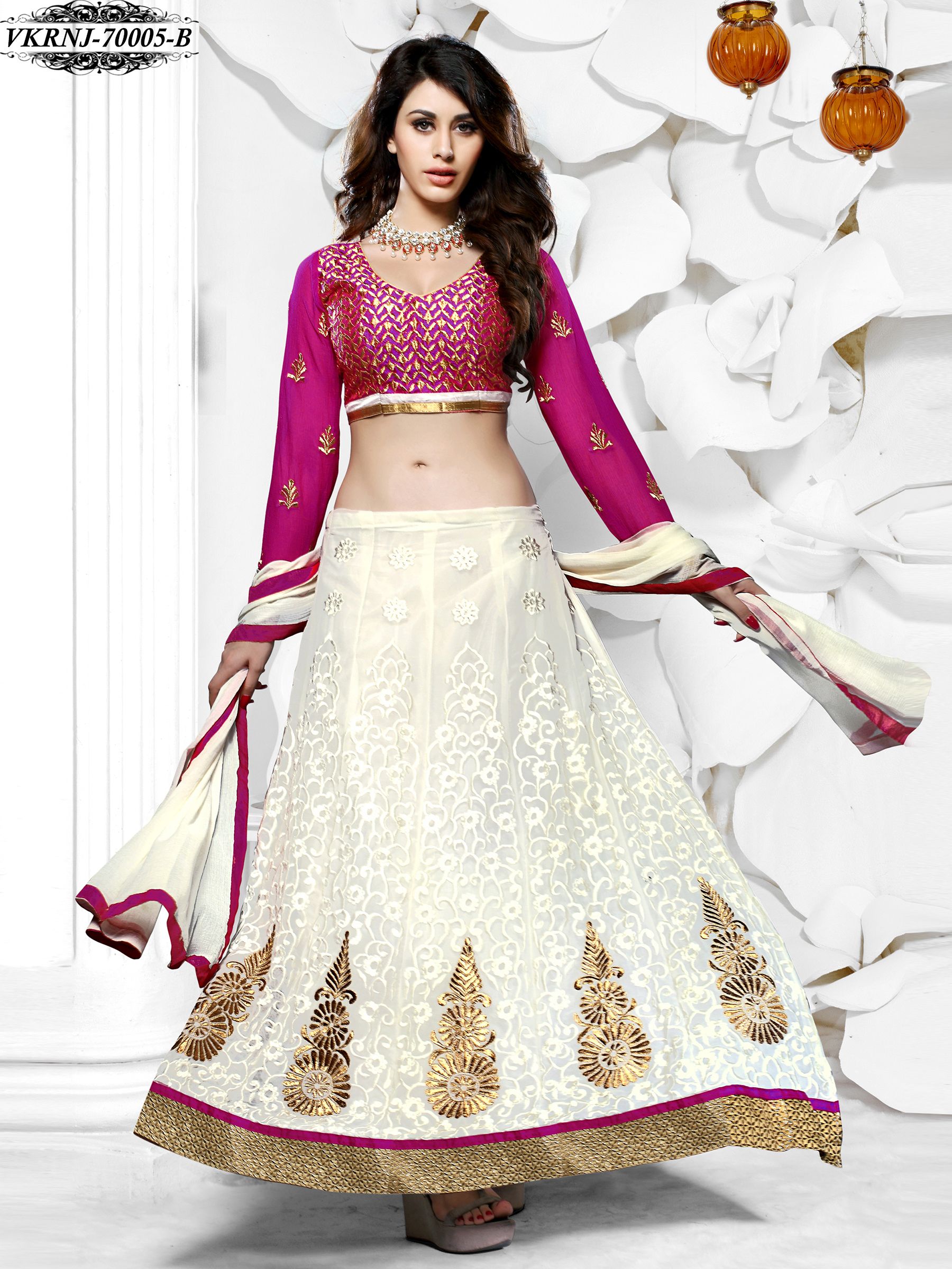 Bottom : White , Georgette , Lehenga-40inch / 2.20mtr
