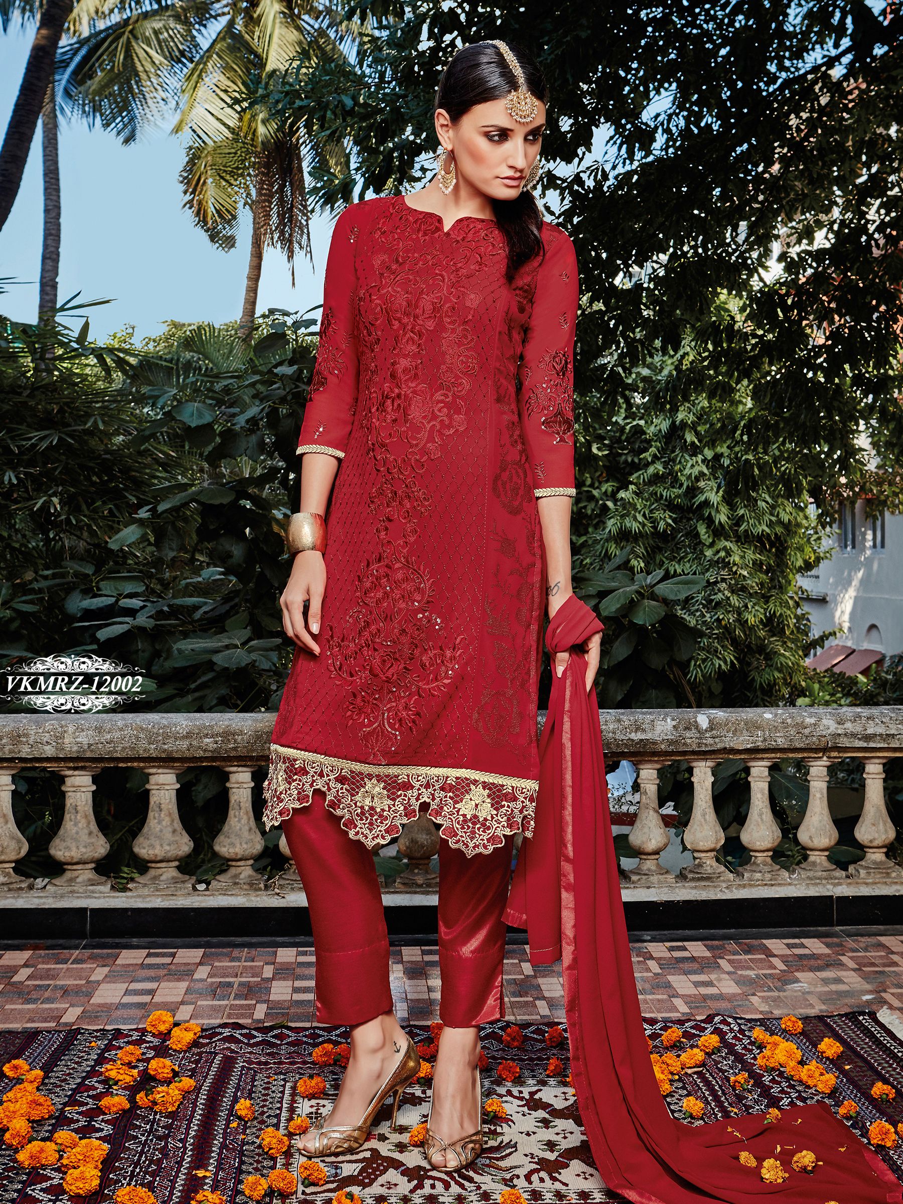 Shonaya Red Colour Georgette Embroidery Semi Stitched Salwar Suit