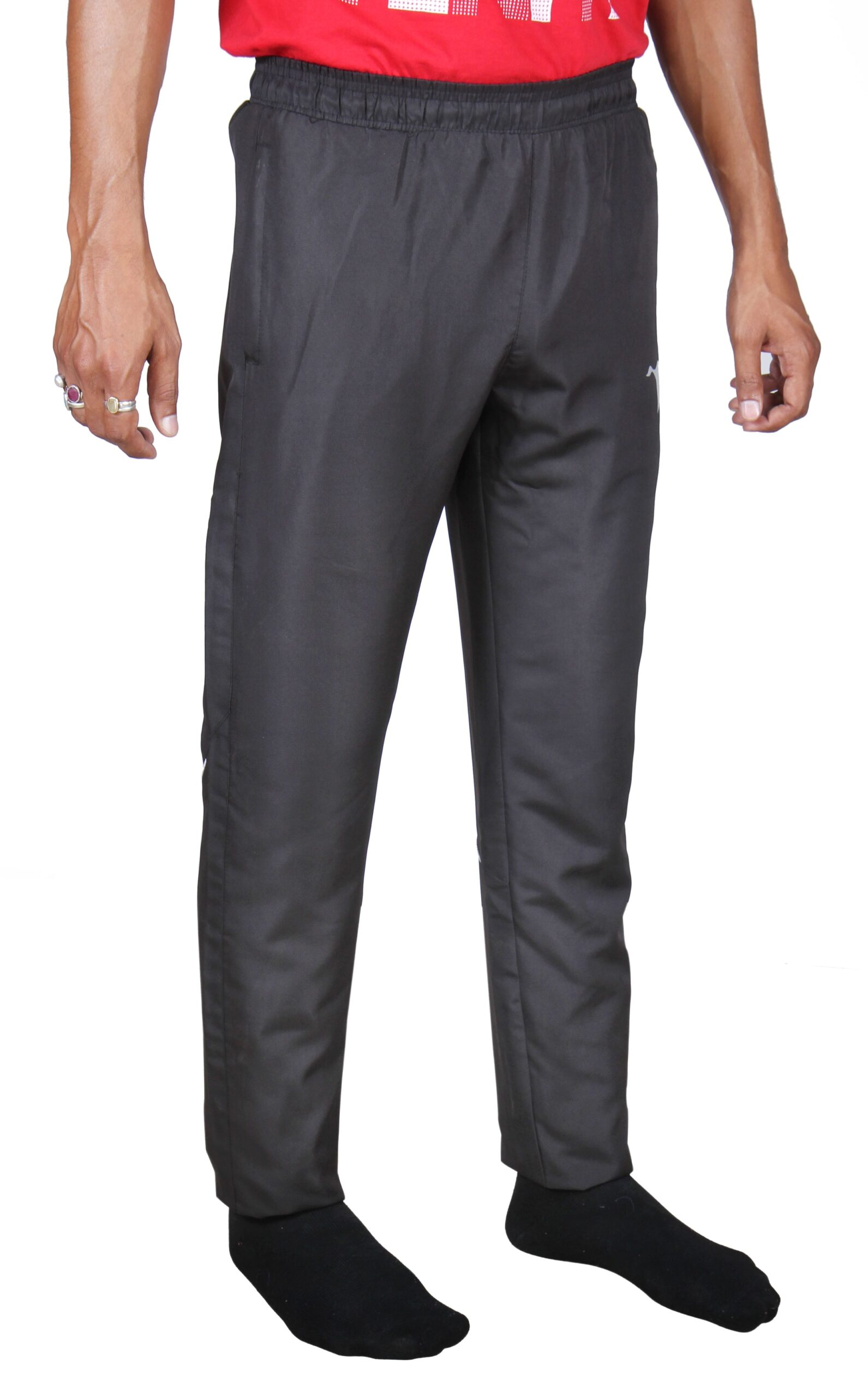 Men’s Solid Dryfit Black Dobby Track Pant. The track pants are made out of very fine fabric. it has two pockets at the either side will be a great addition to your sportswear collection and an elasticized waistband for comfortable fit.