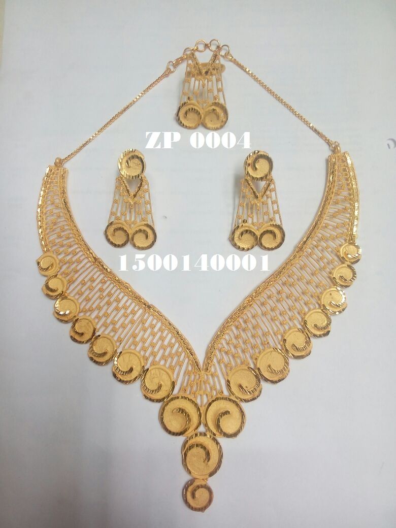The base material is copper and the Gold is deposited on it through various processes.We have a wide range of designs in Bangles,Necklaces and other related Jewelry.