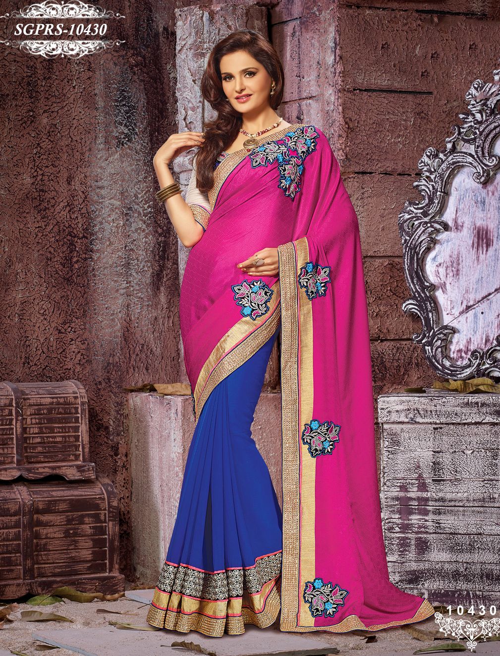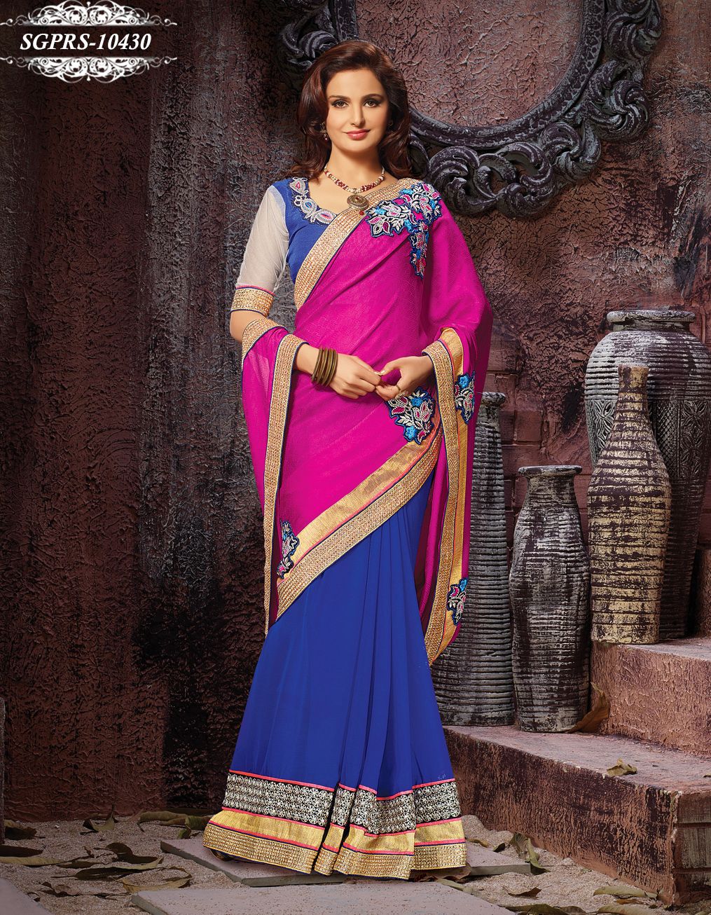 Shonaya Violet & Blue Colour Georgette Embroidered Saree With Blouse Piece